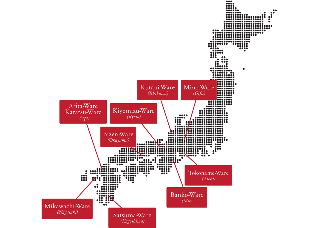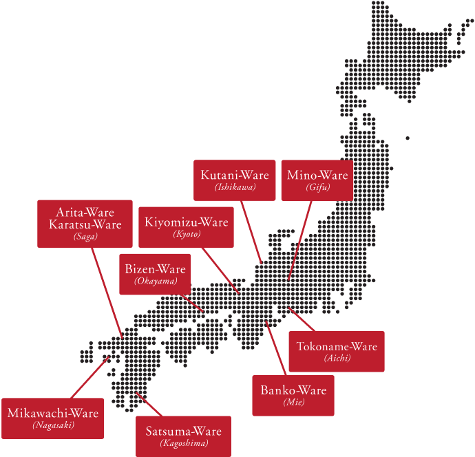There are many ceramics-producing areas in Japan. Here, we introduce you to some of the main areas in the Tokodo collection, with photo of areas.
